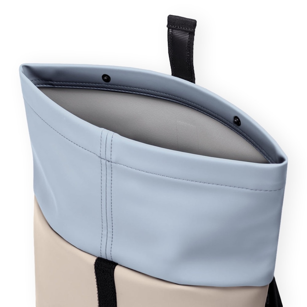 • Roll-top system to scale capacity closes with a hook and loop fastener.