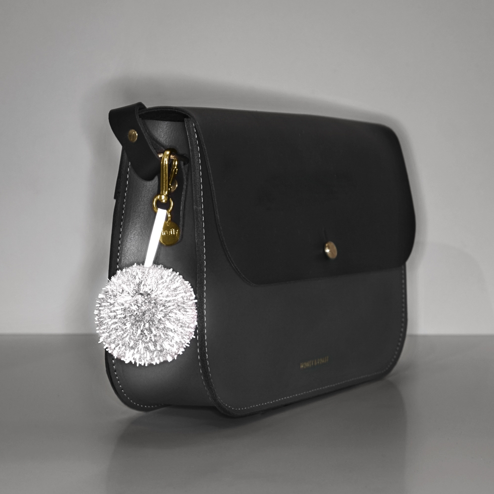 Add some fun reflection to your bag or backpack with these fluffy pom pom balls. To give pom poms some reflection the yarn is mixed with reflective thread. The strap is also made from a reflective material. Packaged in a small box.