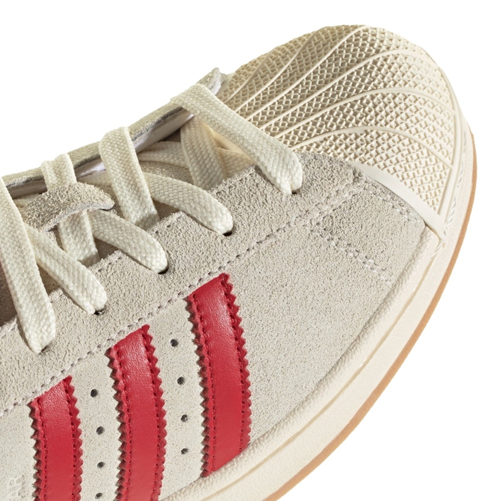- Suede upper with leather overlays.