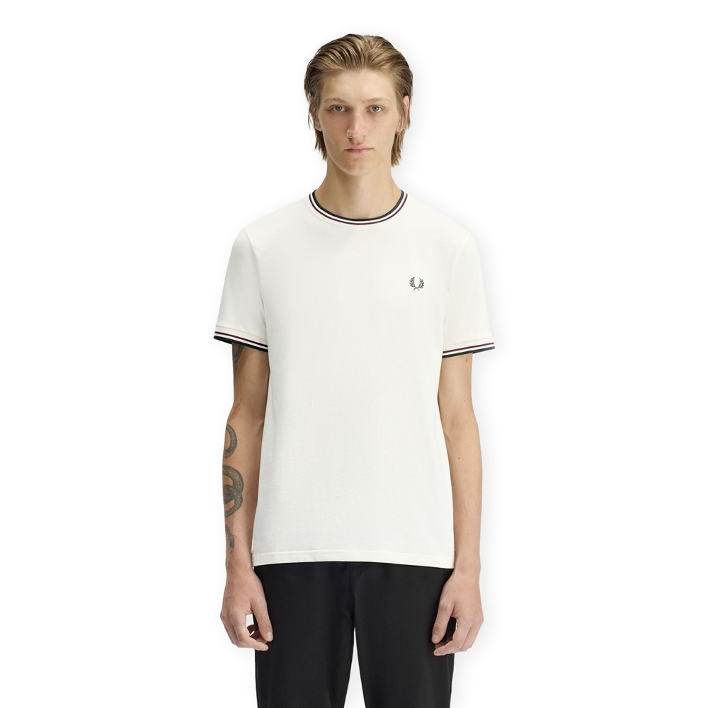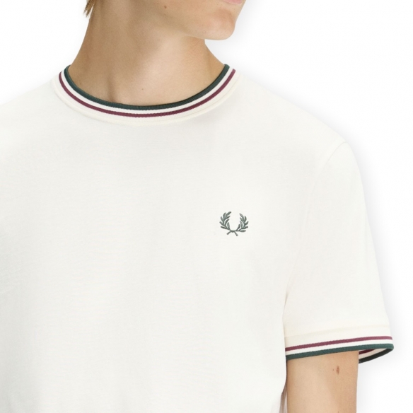 FRED PERRY T-Shirt Twin Tipped M1588V - Ecru/Oxblood/Grassroots