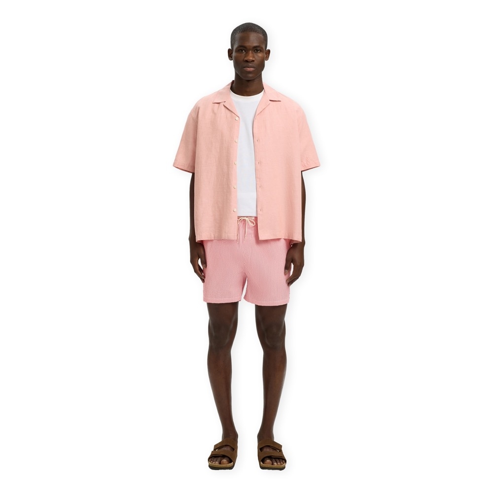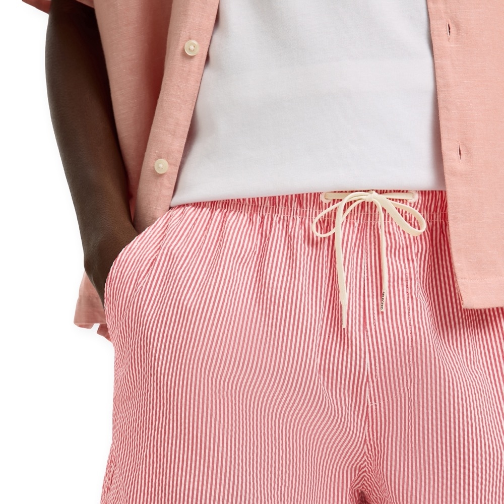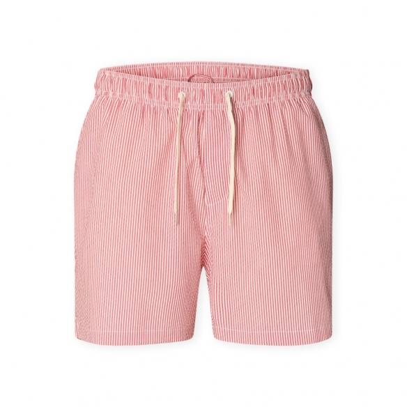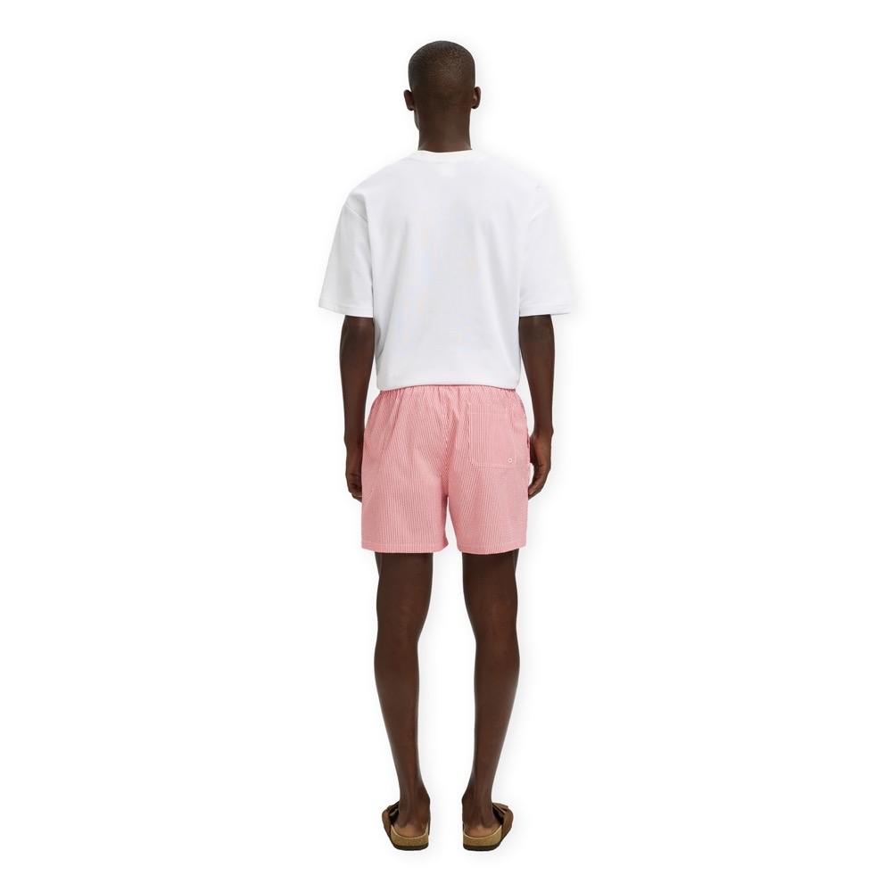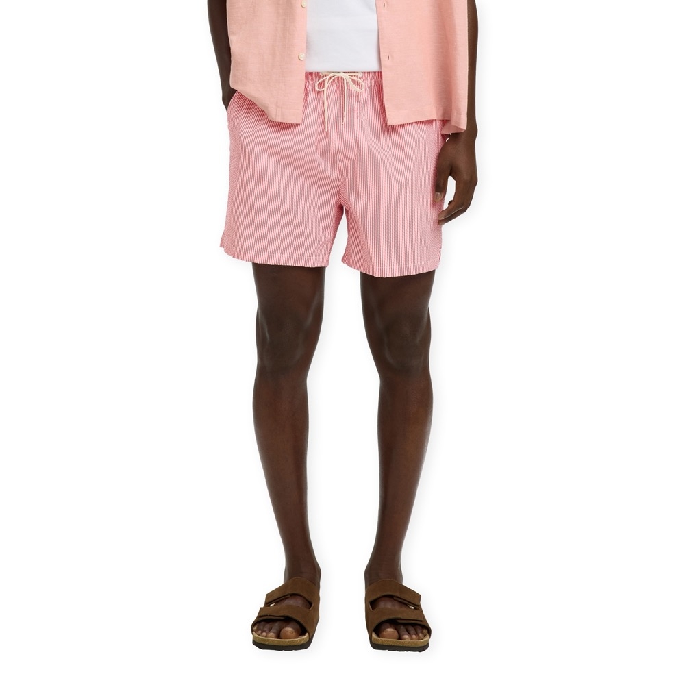 SELECTED Cooper-Seersucker Swim Shorts - Poinsettia with Egret