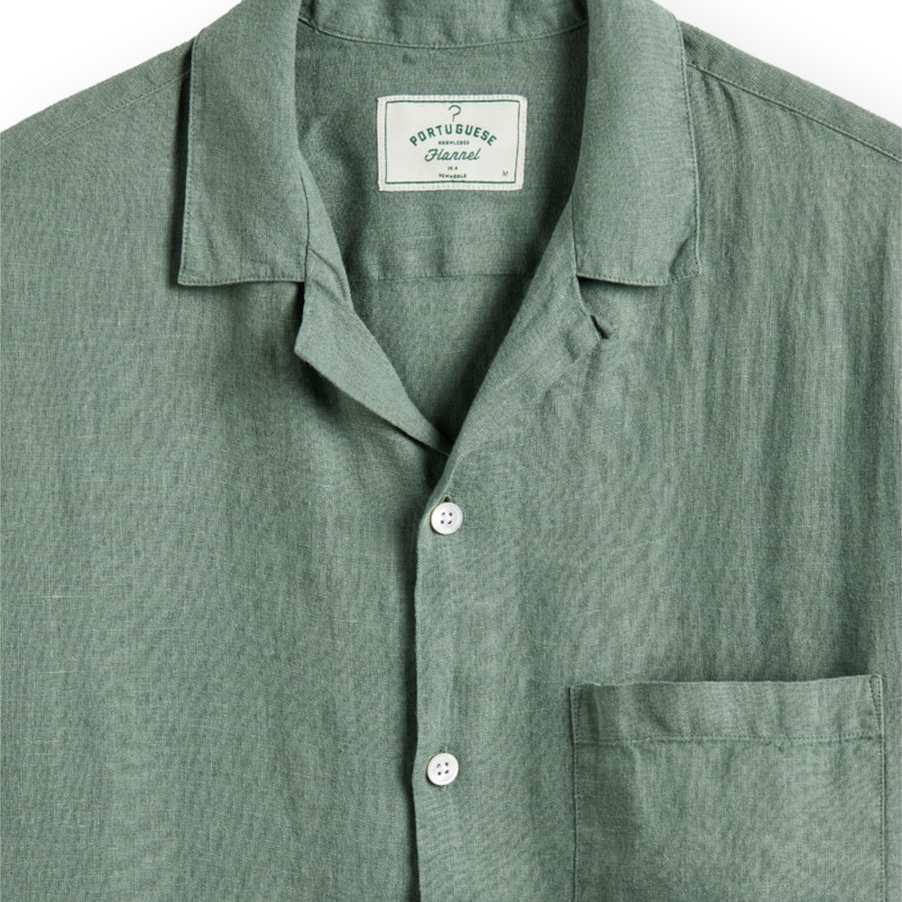 PORTUGUESE FLANNEL Camisa Linen Camp Collar - Dry Green