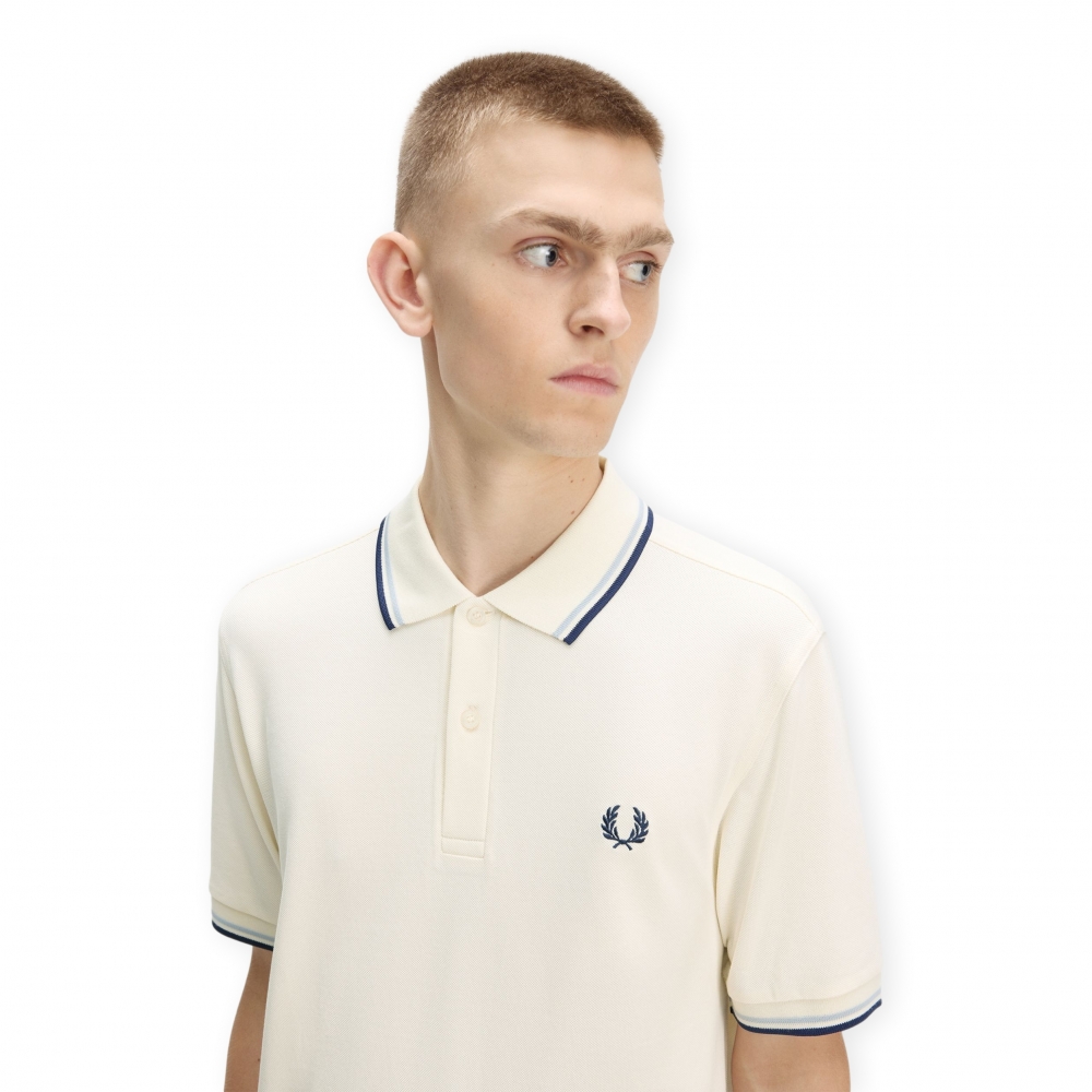FRED PERRY Polo Twin Tipped M3600 - Ecru/Dusky Blue