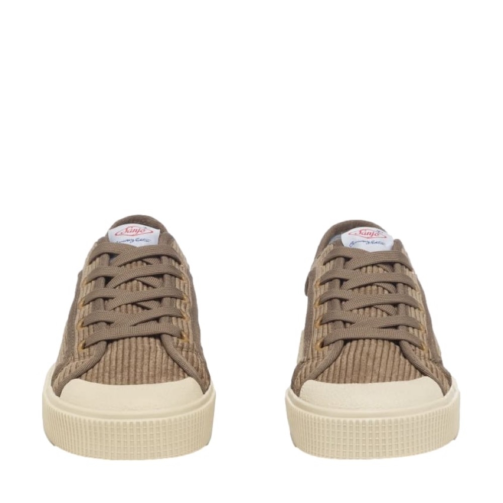 A Sanjo é uma marca portuguesa de sapatilhas criada em 1933. Esta marca foi um ícone, usada por todos, até aos anos 70, altura em que se popularizaram as marcas internacionais. Depois de décadas adormecida a Sanjo voltou recentemente, com novos modelos, em novos materiais, e com novas tecnologias, mas mantendo a sua estética tradicional e apelando à nostalgia que os seus sapatos provocam em inúmeras gerações. A Sanjo reinventou-se para voltar para o mercado. As solas das suas sapatilhas passaram a ser feitas de plástico reciclado, otimizaram o processo de produção para gastar menos recursos e começaram a fazer parcerias com artistas e designers para criar modelos mais modernos. A marca, neste momento, não só vende calçado mas também roupa e acessórios.
